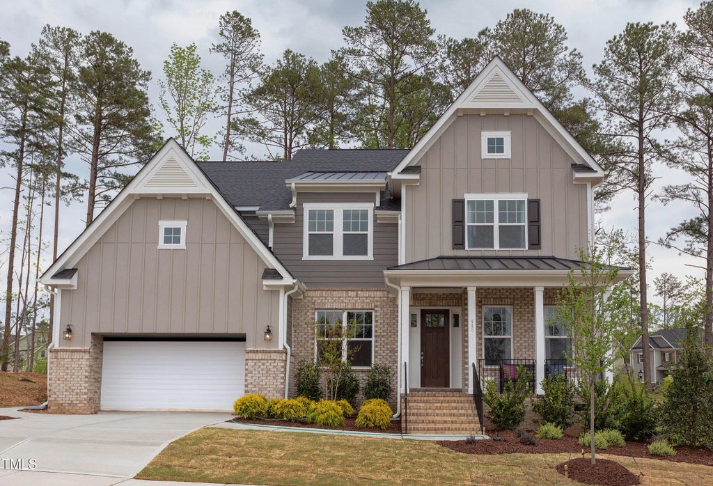 You are going to want to see this home! Crisp white siding framed by bold black gutters and accented brick details give this farmhouse a clean, modern silhouette that stands out with timeless elegance. Photos coming soon! Step into a thoughtful design with the Statesville by Caruso Homes, a spacious and beautifully appointed home offering approximately 3,512 square feet of luxury living on a generous .47-acre homesite. From the moment you enter the grand foyer with its elegant wood staircase, you'll feel the quality and care in every detail. The main level is anchored by a gourmet kitchen designed to host, complete with a large island, gas cooktop, pot filler, soft-close cabinets and drawers, and a butler's pantry that connects seamlessly to the formal dining room. The open-concept family room is warm and inviting with a cozy fireplace, while the study with French doors offers a quiet retreat or home office. Ideal for multi-generational living or guest, the first-floor in-law suite includes a private bath with a walk-in shower for added comfort and convenience. Upstairs, double doors lead to an impressive primary suite with a tray ceiling, dual massive walk-in closets, and a luxurious deluxe spa bathroom featuring a freestanding tub, split vanities, and an oversized tiled shower. A spacious loft offers flexible living space, while additional bedrooms and full baths provide ample room for family and guests. Outside, enjoy the North Carolina seasons from your screened and covered 12x22 rear porch, perfect for relaxing or entertaining. This home includes a side-load 2-car garage plus an additional carriage garage, offering 3-car garage capacity and curb appeal. Located in the desirable Wake County, this community combines elegant living with functionality. **Photos of a similar home are used for representation only and may show options/featured that are not included in the price of this home