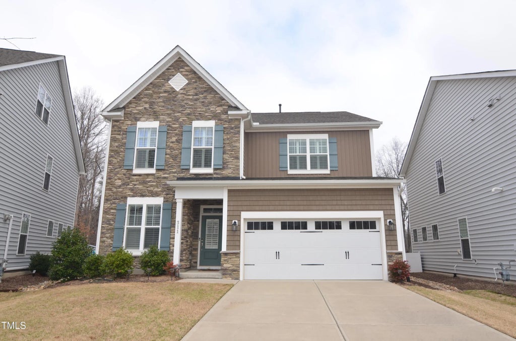 Well located in the master-planned Andrews Chapel Community adjacent to Brier Creek. An immaculate five bedroom, three and a 1/2 bath home. The extra-large open concept kitchen has upgraded cabinets and quartz counter tops with spacious island. Separate dining room plus a breakfast space off the kitchen. Kitchen area flows smoothly into spacious living room on the main floor, making the main floor open and the extra windows make it bright as well. Living room has a gas fireplace. House is loaded with upgrades, including lighting fixtures and switches, plantation shutters throughout the house, upgraded engineered hardwood floors, plumbing fixtures and Renia tankless water heater, crown molding throughout 1st floor, wainscoting in dining room.1st floor guest suite, w/ private full bath could be used as a home office. Upstairs offers owner's suite with coffered ceiling, a walk-in closet off of the luxury bath with Walk-in shower and a soaking tub with upgraded tile cabinets and quartz countertop. Upstairs laundry room has a sink with upper and base cabinets. Three upstairs bedrooms share a hall bath with a dual vanity and a separate toilet/shower area for privacy. Large screened back porch/patio opens to back yard overlooking natural woodland. Gutter guards are installed on the gutters. The Andrews Chapel community includes a pool, a playground, walking trails, two dog parks, a soccer field, and a volleyball court! The house has been a second home, lived in 3 month/year, so at is like is in like new condition.