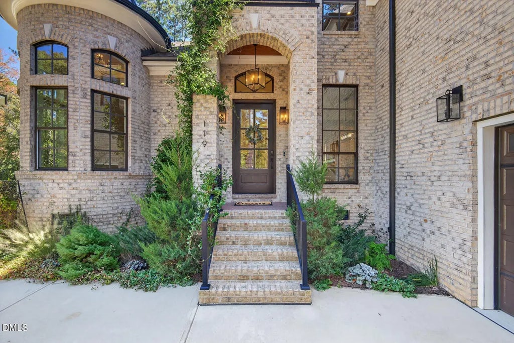 Meticulously crafted and simply stunning, this residence is located in the peaceful Placid Valley neighborhood in North Durham. Exceptional location - only minutes from Duke and walkable to the Eno River at the back of the neighborhood. Step inside 119 November Dr. and behold the beauty of the classic winding staircase, the gorgeous hardwood floors and soaring ceilings. Designed for culinary enthusiasts, the kitchen boasts elegant granite countertops with a spacious center island, a six burner gas range complete with stovetop pot filler, and a butler's pantry, making it ideal for both everyday meals and entertaining. The sun drenched breakfast nook is surrounded by windows and becomes the best seat in the house for meals or visiting. The first floor primary suite offers an impressive tray ceiling, walk-in closet with custom built-ins, an ample dual vanity and luxurious soaker tub. Up stairs you'll find the coziest and most serene second story covered porch filled with plants and southern sun. The coveted, second floor bedroom with private full bathroom provides flexibility no matter your family's needs. Upstairs, two more generously sized bedrooms include private bathrooms and walk-in closets, offering personal retreats for all who reside here. Dedicated space throughout the home for your home office, hobby room, and a large bonus second-floor entertainment space complete with its own wet bar. The flat, meticulously landscaped backyard is packed with over 15 species of trees & shrubs, an iris collection and a large collection of perennials and rock gardens. Multiple galvanized raised garden beds are equipped with budding veggies and herbs! Move in and spread out with peace of mind and comfort of body in this like-new, 2020 built, elegantly and intricately designed home!