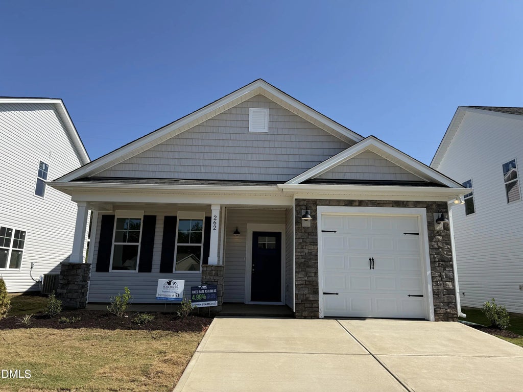 Premium lot! Beautiful new ranch home in Clayton's Ashcroft community. Featuring an open living layout, this home shines with beautiful natural light & classic design in its granite kitchen counters, kitchen island, electric fireplace, and built-in bookshelves. Enjoy pools, gyms & golf with your FSC Membership! Photos of similar homes and cut sheets are for representation only and may include options, upgrades or elevations not included in this home.