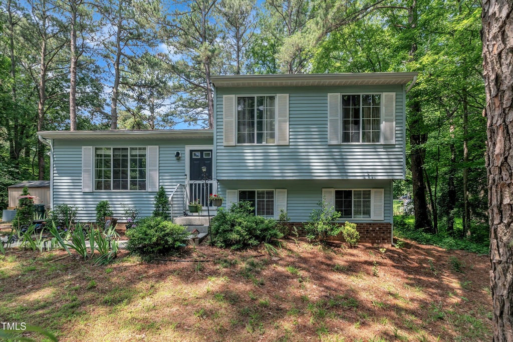 A rustic Split Level with NO HOA on .75 acres in Garner is waiting for its new owner! Large, wooded lot with native plants. Easy access to 50, 70, 40, shopping, schools, downtown Garner, and more! The Main Level has you enter in the Living Room and walk through to the Open Kitchen and Breakfast/Dining Nook and out onto the deck overlooking the wooded backyard. Upstairs, there are 3 bedrooms -- primary suite offers a double vanity! Head down to the basement where you have a family room and ample storage or room to expand!