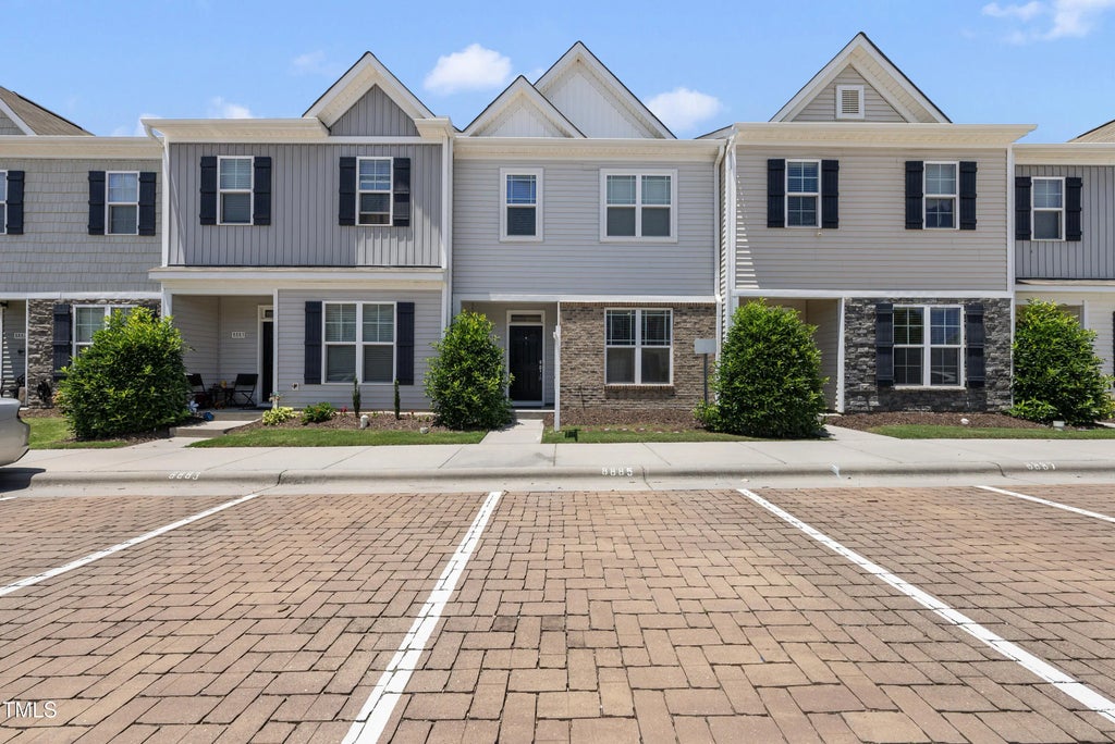 Discover this charming and meticulously maintained two-story townhome, offering 3 bedrooms and 2.5 bathrooms—move-in ready! The main level features beautiful engineered hardwood flooring throughout, leading to a spacious kitchen with a large island, perfect for gatherings and entertaining guests. The primary suite boasts a vaulted ceiling, a generous walk-in closet, and a private ensuite bath for added comfort. Upstairs, you'll find two additional bedrooms that provide flexibility for a home office, workout space, or playroom. Enjoy nice summer evenings on the private patio buffered by trees. Ideally located just minutes from Triangle Town Center Mall and I-540, this home offers easy access north to downtown Wake Forest and south into Downtown Raleigh. Don't miss the opportunity to make this wonderful property your new home!