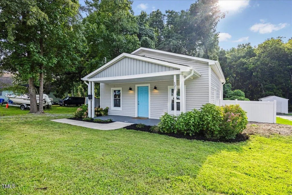 Charming Downtown Fuquay Home with so much life! This beautiful 2-bedroom, 1-bath home is just a short walk to the heart of downtown Fuquay. Step inside to a bright and open floor plan featuring a stunning like new kitchen with white shaker cabinetry, sleek white quartz countertops, and classic white subway tile backsplash. Stainless steel appliances and garbage disposal complete the space! Stylish wood-look laminate flooring flows throughout, and the fully renovated bathroom features decorative tile flooring and subway tile tub/shower surround. Major renovations completed in 2021 include a new HVAC system, windows, siding, roof, plumbing, electrical, and more! Enjoy a private, secluded backyard, your own peaceful retreat in a prime, convenient location!!!