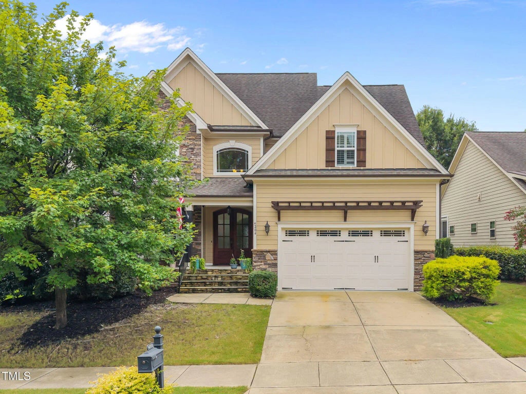 Located in one of Wake Forest's most desired neighborhoods, THIS home offers exceptional main level living including mudroom, laundry room, and hardwoods throughout the 1st floor living areas. The spacious 1st floor primary suite boasts a tray ceiling with luxurious bath and dual vanity, creating a peaceful retreat! You'll want to see this! A coffered ceiling highlights the expansive great room, which flows seamlessly into the breakfast bar and eat-in kitchen—perfect for both everyday living and entertaining! Impressive kitchen complete with stainless steel appliances, granite countertops and custom ivory glazed cabinets. Upstairs, a raised bedroom and large bonus room plus two additional bedrooms with convenient Jack-and-Jill bathroom— PERFECT for guests or family. Unwind in your screened-in porch or step outside and splash around the saltwater pool and patio area, a complete private backyard oasis!
