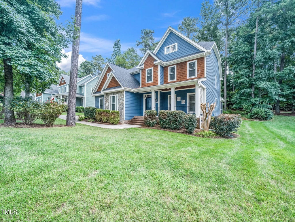 NEW PRICE! Move in Ready! In the highly desirable Patterson Woods community of Youngsville. This 2,754 sq. ft. home features 3 bedrooms plus a large bonus room, 2.5 baths, and an open concept layout with built-ins and a fireplace in the family room. Two walk in closets in the primary bedroom and a vaulted ceiling offers a wonderful retreat. The upgraded kitchen includes an eat-in area and a formal dining room, ideal for everyday living and entertaining. Freshly painted rooms, hardwood floors, like-new carpet, and a pre-inspection already completed make this home move-in ready. Outdoor living is easy with a screened porch and swing, a large deck with hot tub, and a rocking chair front porch, all overlooking a private .46-acre wooded lot. The oversized 2-car garage with bump out and epoxy floor offers plenty of storage and workspace. Patterson Woods is a picturesque, tree-filled neighborhood with a community pool and sidewalks leading to downtown Youngsville, the library, and local shops—plus it is just minutes to Wake Forest!