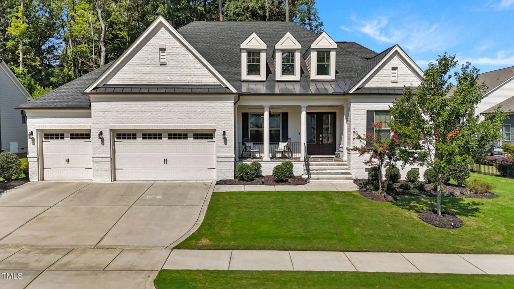 Welcome to this stunning 4-bedroom, 3.5-bath luxury home in Cary's sought-after Piazza at Stonewater neighborhood. Designed with comfort and convenience in mind, this home lives primarily on the first floor, with an impressive main floor primary suite, soaring ceilings, hardwood floors, and an inviting open layout perfect for everyday living and entertaining. The gourmet kitchen is a chef's dream, offering abundant counter space, custom cabinetry, stainless steel appliances, walk-in pantry, and bright breakfast nook. A generous formal dining room with elegant trim details sets the stage for memorable gatherings. The owner's suite is a true retreat, featuring a spa-like bath with oversized soaking tub, separate shower, and two large walk-in closets. Two additional bedrooms are also located on the main floor. Upstairs, you'll find a versatile bonus room and a private guest suite, offering flexible options for recreation, work, or hosting visitors. Outdoor living shines with a screened porch overlooking the backyard and adjacent woods—perfect for year-round enjoyment. A 3-car garage, drop zone with built-in bench, and thoughtful storage throughout add everyday convenience. Stonewater is known for its exceptional amenities, including a pool, clubhouse, playground, and trails. Ideally located near I-540, RDU Airport, Research Triangle Park, American Tobacco Trail, and premier shopping and dining in West Cary, this home offers the perfect blend of elegance, lifestyle, and accessibility.