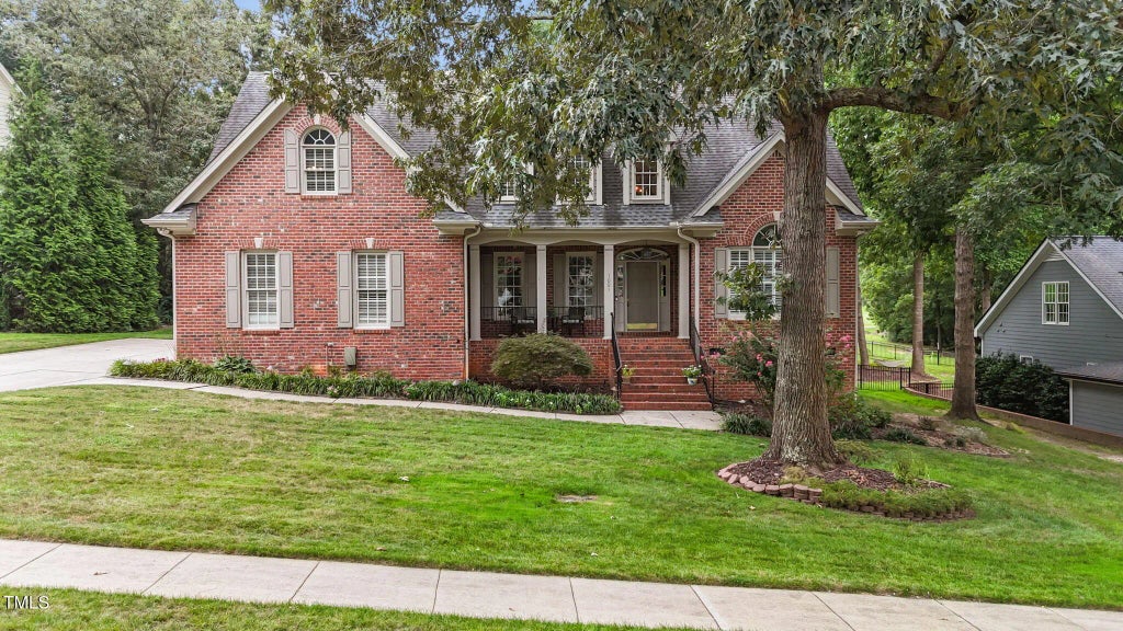Step onto the charming front porch, ideal for rocking chairs and morning coffee. Inside, you'll find a bright and open family room with soaring windows framing gorgeous views and a cozy fireplace. The main floor features hardwood flooring, crown molding, and chair rail throughout, along with a first-floor owner's suite and convenient laundry. The formal dining room is perfect for hosting, while the chef's kitchen offers a large island, eat-in area, a wet bar with sink, ideal for entertaining and a built in desk/work space area. A dedicated home office completes the main level. Upstairs, discover three additional bedrooms and a spacious bonus room with private stair access, perfect for movie nights, poker games, or a playroom. Enjoy the outdoors with an oversized screened porch, open deck, and grilling deck. Additional features include a sealed crawlspace with dehumidifier, walk-in storage, a multi-room entertainment controller, exterior flood lighting, and professional landscaping with uplighting and pathway lighting. The neighborhood offers tree-lined streets, sidewalks, streetlights, and a playground, all within walking distance to the elementary school. Just minutes from East Clayton Park, dog park, walking trails, downtown Clayton's shops and dining, and convenient to major highways. Only 30 miles to downtown Raleigh/RDU Airport and 20 miles to I-95, this is a commuter's dream. Optional golf, swim, and social memberships provide year-round activities and events.