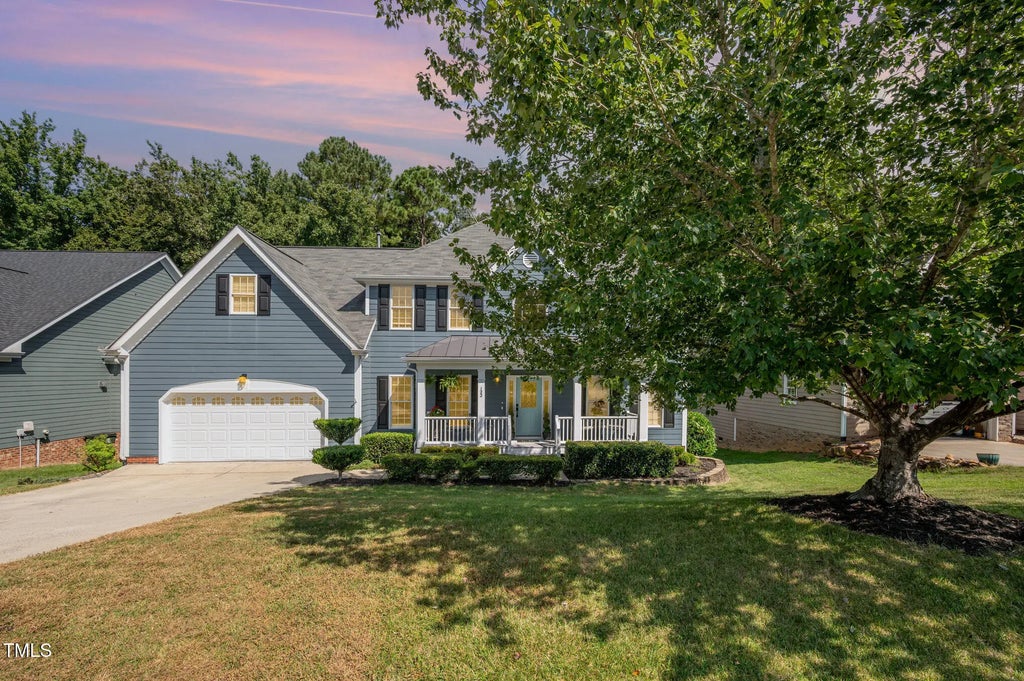 Stunning two-story home in the sought-after Potterstone Village subdivision, featuring 4 bedrooms, 2.5 baths, and numerous recent updates! A freshly painted front porch greets you and leads into a grand two-story foyer with hardwood floors and wainscoting. The formal dining room with tray ceiling flows into the living room with a cozy fireplace. The spacious kitchen shines with stainless steel appliances, an island, and 2023 upgrades including quartz countertops, tile backsplash, painted cabinets, and a new refrigerator. The first-floor primary suite boasts a hardwood accent wall, updated carpet and LVT Primary Bathroom(2023), and an ensuite with dual vanities, walk-in shower, and soaking tub with refreshed tile. Upstairs, find three additional bedrooms with updated LVP flooring and a versatile bonus room that could serve as a 5th bedroom. Enjoy outdoor living on the deck overlooking the fenced yard, plus a new patio and Brio Firepit added in 2023—perfect for entertaining! Please see the features/upgrade list in the MLS docs