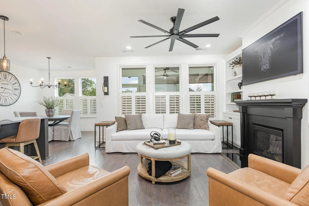 Beautiful 1.5-story home in the highly sought-after Stonemill Falls community featuring 3 bedrooms and 3 bathrooms! The open floor plan includes a living room with a cozy fireplace and built-ins, seamlessly connected to a stunning kitchen with stainless steel appliances, upgraded granite countertops and cupboard hardware, gas cooktop, and built-in oven and microwave. Hardwoods and LVP flooring, no carpet throughout entire house. The first-floor primary suite offers a walk-in closet with custom clothing storage and spa-like ensuite with dual vanities, bidet and a walk-in shower. Also on the main level are a secondary bedroom with attached full bath, and an office with French doors. Upstairs, you'll find a private bedroom with a full bath, a bonus/sitting room, and walk-in attic storage. Enjoy outdoor living with a screened porch overlooking the fully fenced backyard. The new garage door and epoxy floor make the garage a beautiful extension of the house. Washer/dryer convey. Screene porch furniture convey. New high end HVAC system. New Additional highlights include a walk-in crawl space and a fantastic location close to highways, Falls Lake, shopping, and restaurants.