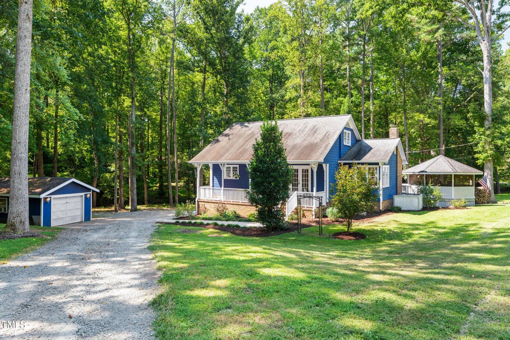 Versatile 3BR/2.5BA home, perfectly situated mere minutes from Chapel Hill, Hillsborough, and Duke. Inside, hardwood floors run throughout the main living areas and bedrooms, complemented by a cozy wood-stove in the living room/dining areas. The kitchen features stainless steel appliances, tile backsplash, granite counters, and a pantry, while the upstairs bedroom is a full private suite with it's own bathroom. Step outside to a 40 x 17 deck that flows into the screened gazebo, complete with a built-in bar and mid-sized refrigerator - ideal for entertaining. The partially finished basement (over 1000 sq ft!) can be accessed from inside or outside, and is ideal for a shop, music/art studio, home gym, or extra living space or storage. Additional perks include a true foyer, rocking-chair front porch, generous circular driveway with ample parking, detached garage shop, shipping crate for additional storage, and an extra shed with a covered parking spot. A walkable bridge connects to the adjoining 0.73-acre lot for added land buffer and opportunity, and conveys with the house parcel, for a combined 1.36 acres. All this in a prime location >> less than 2 miles to Hwy 86, 4 miles to I-40, 2.5 miles to Emerson Waldorf School, with quick access to UNC Chapel Hill, Duke University, downtown Hillsborough, and just 25 minutes to RDU.