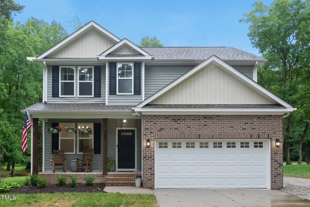 Settle in and unwind on your charming rocking-chair front porch, the perfect spot to take in the peaceful surroundings. Inside, the chef's kitchen is a true centerpiece, featuring granite countertops, stainless steel appliances, and an ideal layout for effortless entertaining. The luxurious primary suite offers a spacious walk-in closet, double vanity, relaxing soaking tub, and separate shower. Additional highlights include custom closets, a stylish Murphy bed, and a powder bath upgraded with a new vanity and shiplap accent wall. Throughout the home, you'll find thoughtful updates such as LVP flooring (2023), upgraded black hardware, interior doors painted in a modern black finish (2025), new carpet (2025), craftsman-style trim and open rail (2025), and fresh interior paint (2025). The finished garage boasts fresh paint, slat wall storage, and overhead storage for optimal organization. Step outside to enjoy over 1.3 acres of tranquil outdoor living—perfect for summer BBQs and sipping sweet tea under the open sky. Recent improvements include a new well pump (June 2025), ensuring both beauty and function are already in place.