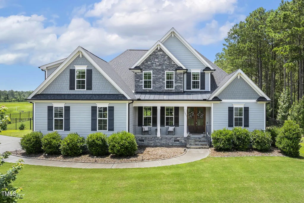 Welcome to this meticulously crafted 4-bedroom, 3-bath home built by Cypress Homes in 2018, nestled on a spacious and fully fenced 1.1-acre flat lot in the highly desirable Olde Waverly neighborhood in Fuquay Varina. Step inside to discover quality finishes and thoughtful design throughout from gleaming hardwood floors and porcelain tile to custom trim molding, tray ceilings, and built-in cabinetry. The main floor features a luxurious primary suite with a spa-like soaking tub, walk-in shower, and a custom walk-in closet. An additional main-level bedroom and full bath offer flexible space for guests or a home office. The soaring cathedral ceilings in the family room highlight the impressive two-story gas fireplace, flanked by custom built-ins. The open-concept gourmet kitchen is a chef's dream with a large island, granite countertops, and plenty of storage. Upstairs, you'll find two additional bedrooms, full bathroom, a large bonus room, and walk-in attic storage. Enjoy outdoor living on the spacious porch, which features an EZE Breeze enclosure for year-round comfort, overlooking the private backyard oasis complete with an inground saltwater pool perfect for relaxing or entertaining. Additional highlights include a Generac whole-home generator, security system, a water softener, and a fantastic location with easy access to all that Fuquay Varina has to offer. Don't miss your chance to own this one-of-a-kind property that perfectly blends elegance, comfort, and functionality!