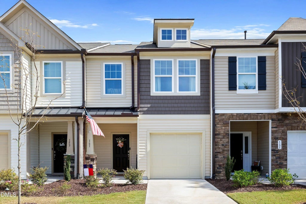 Welcome to 161 Wildflower Circle — nestled in the sought-after Meadow View community, where you'll enjoy fantastic amenities including a swimming pool, cabana, walking trails, and free membership to the Clayton Community Center. Conveniently located just minutes from downtown Clayton and Highway 70. This wooded cul-de-sac lot offers both privacy and prime location. Step inside the spacious first floor w/ 9ft ceilings; features open floor plan with large quartz island & built in breakfast bar with wine fridge. Step out back & enjoy the expansive covered deck with wooded privacy. Perfect for entertaining or enjoying your morning coffee. Upstairs features large owners suite w/walk-in closet, sitting area, bathroom w/ dual vanity, water closet, & walk-in shower. 2 ample size secondary bedrooms, full bath w/duel vanity, & laundry closet round out the second floor. 1 car garage, attached storage closet, & attic w/ pull down stairs provide tones of storage. Refrigerator, wine fridge, new washer/dryer, & security system can convey with acceptable offer. Priced to sell, don't miss out on this incredible opportunity!