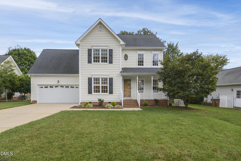 Well maintained traditional 4 bedroom 2.5 bath home in prime Wake Forest location. Spacious family room features gas log fireplace. Formal dining room includes hardwood floors and wainscoting. Bright & open kitchen offers tiled floors, tile backsplash & newer stainless steel appliances (fridge conveys). Sunny breakfast nook. Large primary suite has trey ceiling, dual vanities, soaking tub with separate tile walk in shower and walk in closet. Huge 4th bedroom/bonus room. New gas pack 2023. Added peace of mind with a generator. Deep, flat backyard. Welcoming front porch. Extremely close to Downtown Wake Forest.