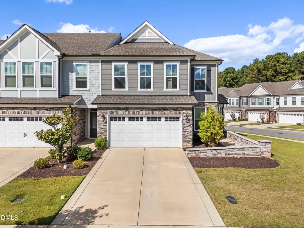 Desirable Honeycutt Farm Community-End Unit Townhome Corner Homesite! Stunning Gourmet Kitchen with Farmhouse Sink and Hot Water Dispenser, 5-Burner Gas Cooktop + Quartz Countertops. Immaculately cared-for Home with Spacious Living and Dining areas-wonderful for entertaining. Downstairs has a Bonus/Flex Room. Hardwood stairs lead to Bedrooms each with Walk-in Closets. Additional large loft area for entertainment. Fiber Internet, smart doorbell,and EV charger. Resort-like Community Amenities include Pool, Playground, Walking Trails, Dog Park, Fitness + Community Center! Low-maintenance Luxury Convenient to all Holly Springs has to offer!