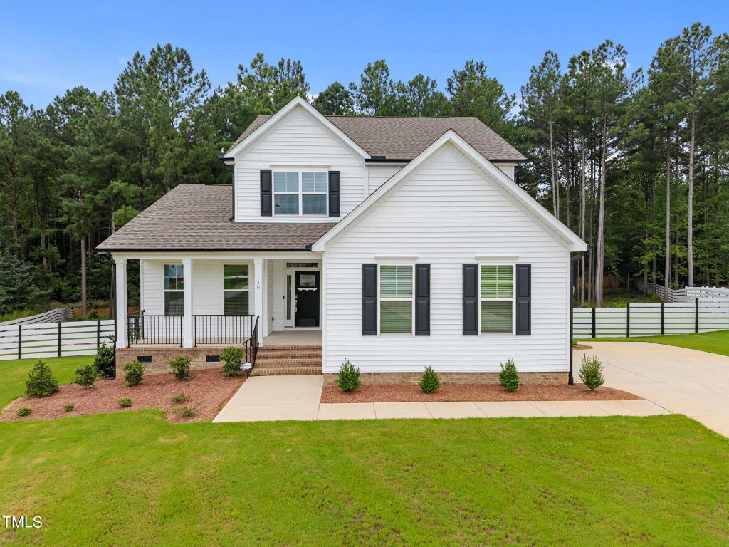 Step into this move-in-ready 2024 home perfectly situated on a full acre at the end of a peaceful cul-de-sac. From the charming rocking-chair front porch to the spacious back deck with pergola, this home is designed for relaxing evenings and enjoying your fenced backyard with plenty of room to play, garden, or gather with friends. Inside, you'll find high-end finishes and thoughtful upgrades throughout, including crown molding, luxury vinyl plank flooring in all four bedrooms, and a gourmet eat-in kitchen with a vented hood, gas cooktop, quartz countertops, and soft-close cabinetry. The dedicated dining room with wainscoting is perfect for hosting special dinners—though it can easily be reimagined as a home office or flex space to fit your needs. The first-floor primary suite offers trey ceilings, a soaking tub, walk-in shower, dual vanities, and a generous walk-in closet. Upstairs, three spacious bedrooms and an oversized loft provide endless options for recreation, work, or guests. This home has NO CARPET!!