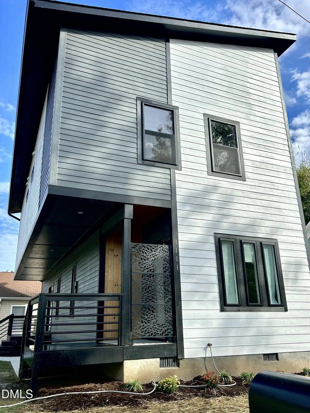 Experience the perfect blend of style, comfort, and convenience in this beautifully renovated contemporary home, just minutes from Downtown Durham and the American Tobacco District. The striking exterior showcases a bold two-tone palette with modern black trim, blending the charm of its original footprint with the sophistication of a new design. Inside, you'll find an open layout with thoughtful updates, modern fixtures, and high-end finishes that create an inviting atmosphere. The spacious main level connects the living, dining, and kitchen areas, ideal for entertaining or relaxing. Upstairs, the primary suite offers a peaceful retreat with a spa-inspired bath and generous closet space. Outside, enjoy a private fenced yard, covered side deck, and charming front porch perfect for gatherings or quiet evenings. With its refined design and prime location, this home is truly a must-see.